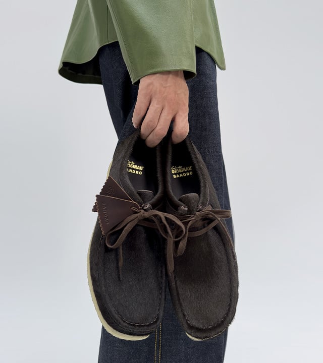 Der 1968 eingeführte Wallabee™ hat sich als Ikone in verschiedenen Subkulturen etabliert, von der Mod-Bewegung bis zur Hip-Hop-Szene. Im Rahmen dieser Kollaboration interpretiert das SANDRO-Studio den Wallabee™ für Herren neu und kombiniert dabei edle Materialien mit klaren Linien: sandfarbenes Velourskalbsleder, cognacfarbenes Leder oder schokoladenfarbenes Fell in Pony-Optik. Der Schuh ist mit der ikonischen Kreppsohle von Clarks ausgestattet.