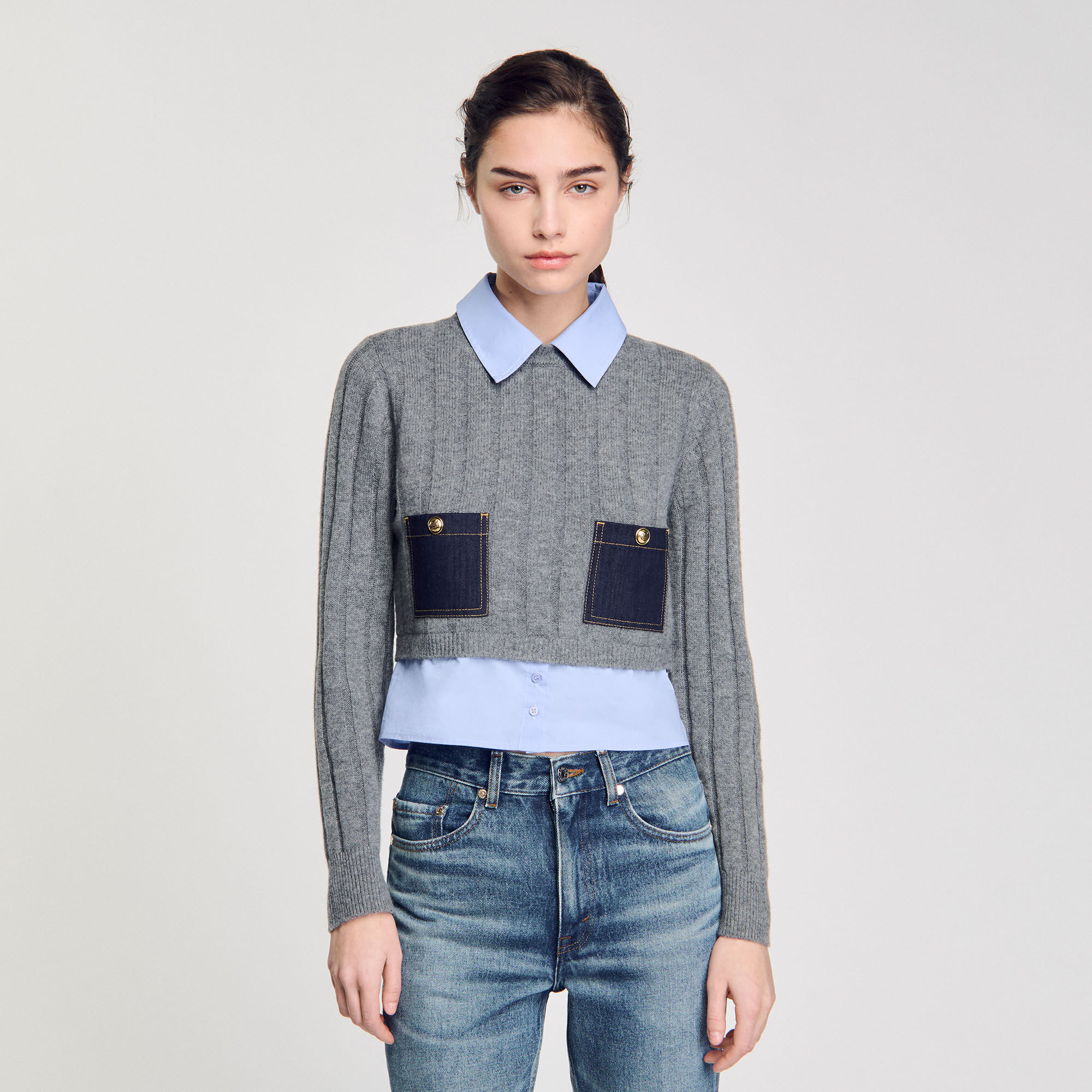• Kurzer Pullover aus Wolle und Kaschmir Sandro Damen