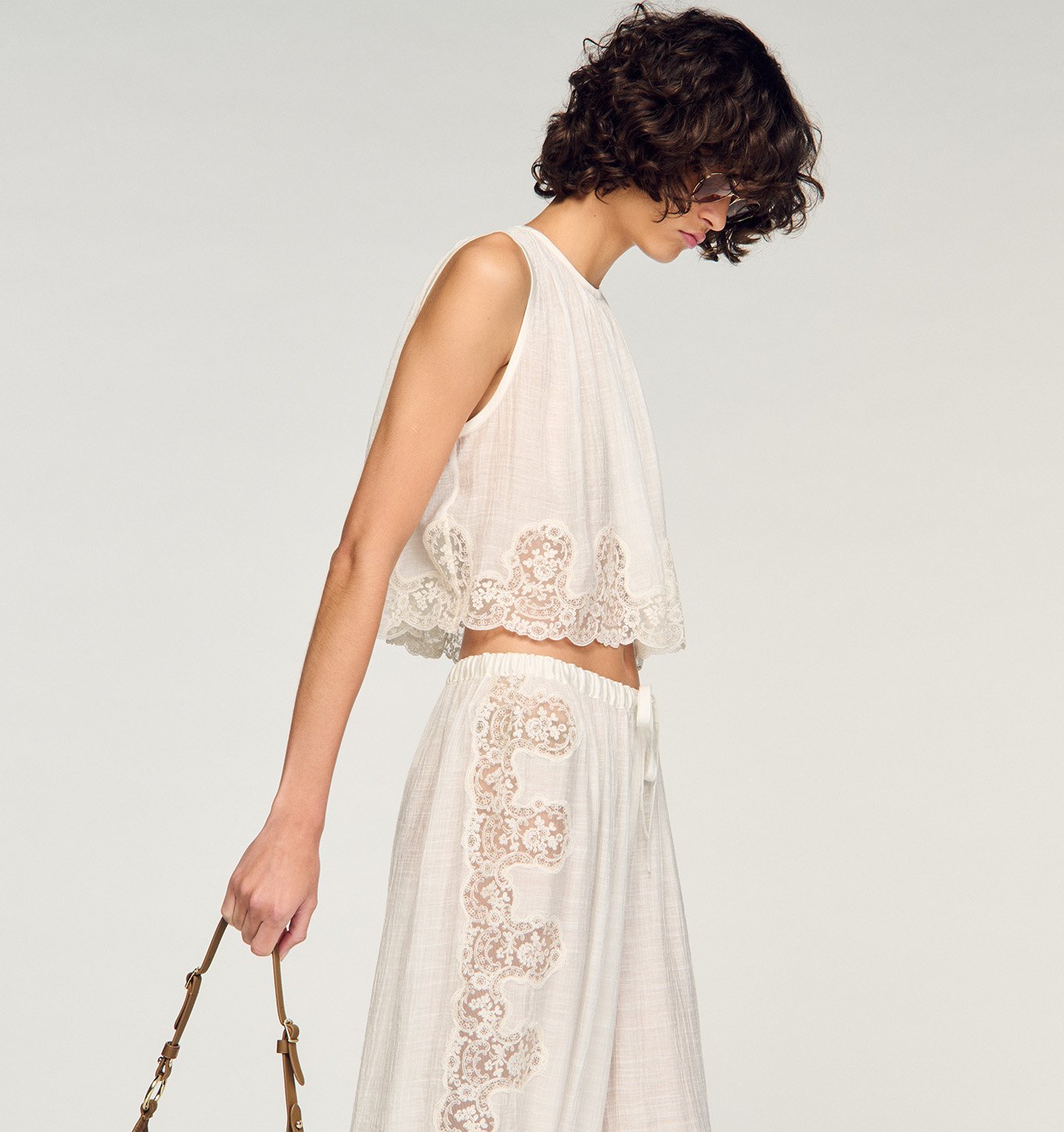 Abgestimmte Sets und fließende Materialien strukturieren die Silhouetten, während bedruckte Hemden und luftige Kleider dem Ganzen Dynamik und Modernität verleihen. Häkel-Designs, das absolute Markenzeichen der Saison, finden sich sowohl in der Kleidung als auch bei den Accessoires wieder und unterstreichen eine handwerkliche, sommerliche Ästhetik.